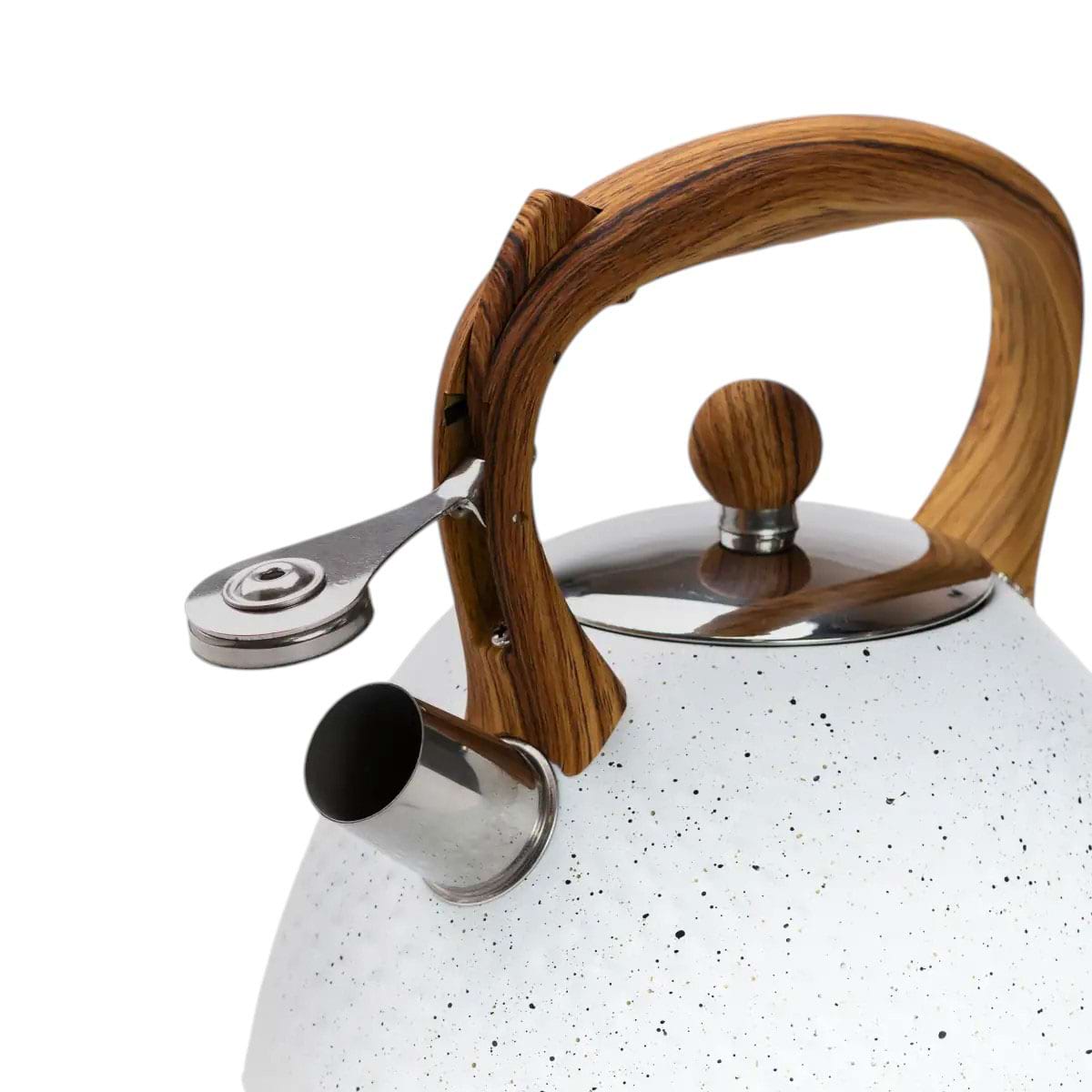 Для тих, хто часто забуває чайник на плиті, чайник оснащений насадкою-свистком, який відкривається за допомогою курка на ручці. Такий варіант вважається найбільш безпечним, адже унеможливлює ризик отримання опіків від пари або нагрітого металу.
