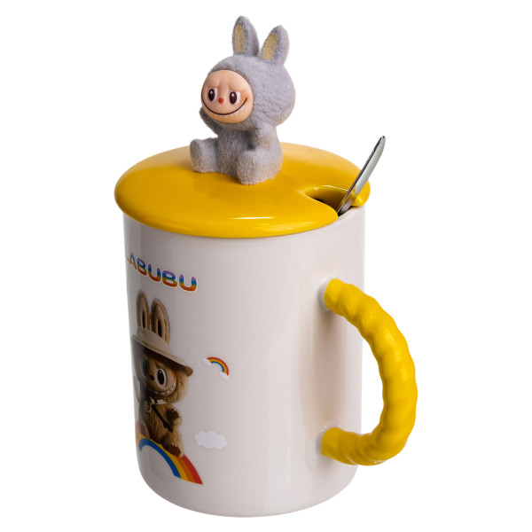 Дизайн прикрашено зображенням персонажа Labubu — деталь, яка надає чашці впізнаваного вигляду та робить її приємним подарунком для колекціонерів або поціновувачів оригінального посуду. На верхній частині кришки розташована декоративна фігурка Labubu. Завдяки висоті 15 см та діаметру 7,5 см, чашка має оптимальні пропорції для гарячих і холодних напоїв, а вага 400 г забезпечує стабільність на поверхні.