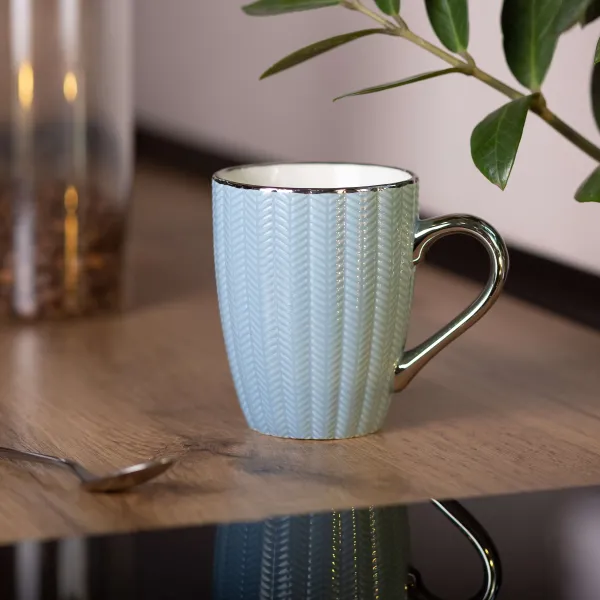 Особливого шарму чашці додають срібляста ручка та ободок, які підкреслюють сучасний стиль. Виріб добре поєднується з різними інтер'єрами та може стати стильним доповненням до сервірування столу. Слід враховувати, що чашку не можна використовувати в мікрохвильовій печі.