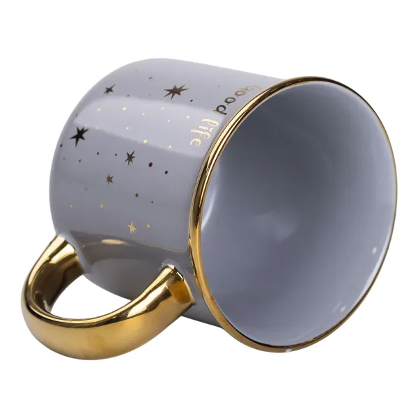 - Дизайн: напис "Good Life", золотий обідок і ручка