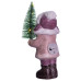 Порцелянова фігурка дівчинки з ялинкою — це зимовий декоративний елемент, що поєднує естетику та функціональність. Вона зображена у рожевому пальті з білим хутром, темних чобітках і пухнастій шапці, тримаючи в руках маленьку зелену ялинку з теплими жовтими вогниками та білого ведмедика. Поверхня фігурки має легкий блиск і покрита штучним снігом, що підсилює святкову атмосферу.