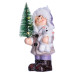 Фігурка зображує дівчинку в білому пальті з чорними ґудзиками, білому капелюсі з вушками, фіолетових штанах і коричневих черевиках. В руках — зелена ялинка та біла іграшка. Поверхня фігурки має легкий ефект засніженості, а вбудована підсвітка створює тепле світіння, підкреслюючи деталі оздоблення. Матеріал — порцеляна, вага — 300 г, що забезпечує легкість і стабільність.