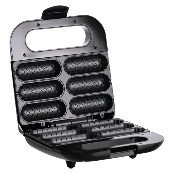 Вафельниця оснащена пластинами з антипригарним покриттям, не вимагає використання олії під час приготування, готова випічка легко виймається з молдов. Оптимальна потужність забезпечує швидке нагрівання та рівномірне приготування вафель. Принцип приготування гранично простий: у комірки заливається тісто, вставляються сосиски на шпажках, після чого потрібно додати ще тіста та закрити вафельницю. Про готовність пристрою до роботи повідомляє світловий індикатор на корпусі.