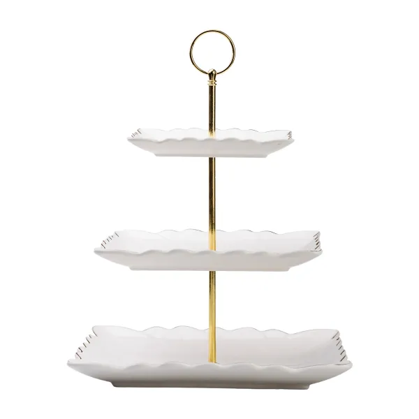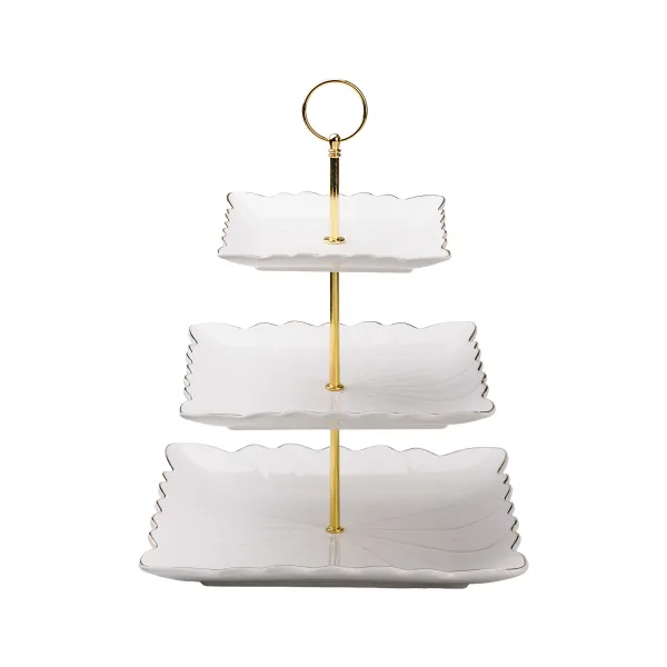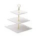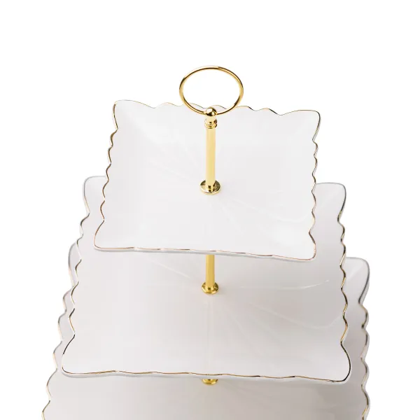 Триярусна порцелянова етажерка Classic — стильний аксесуар для сервірування фруктів, десертів і випічки. Завдяки квадратним тарілкам різних розмірів, вона додає сучасного акценту та забезпечує зручне розташування страв на кожному рівні. Етажерка ідеально підходить для святкових заходів або сімейних застіль, адже дозволяє ефектно представити частування.