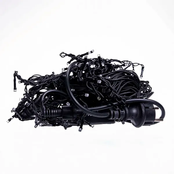 Гірлянда «Бахрома» з 200 LED лампочками створює атмосферне освітлення для зовнішнього або внутрішнього декору. Довжина основного шнура становить 12 метрів, що дозволяє прикрашати фасади будинків, вікна, балкони, альтанки чи вітрини. Завдяки чорній нитці гірлянда непомітна вдень і виглядає акуратно при монтажі, а в темний час доби рівномірно розсіює світло, створюючи святкову ілюмінацію.