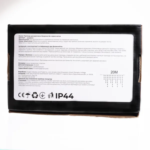 Гірлянда «Бахрома» з 335 LED лампочками створює атмосферне освітлення для зовнішнього або внутрішнього декору. Довжина основного шнура становить 20 метрів, що дозволяє прикрашати фасади будинків, вікна, балкони, альтанки чи вітрини. Завдяки чорній нитці гірлянда непомітна вдень і виглядає акуратно при монтажі, а в темний час доби рівномірно розсіює світло, створюючи святкову ілюмінацію.