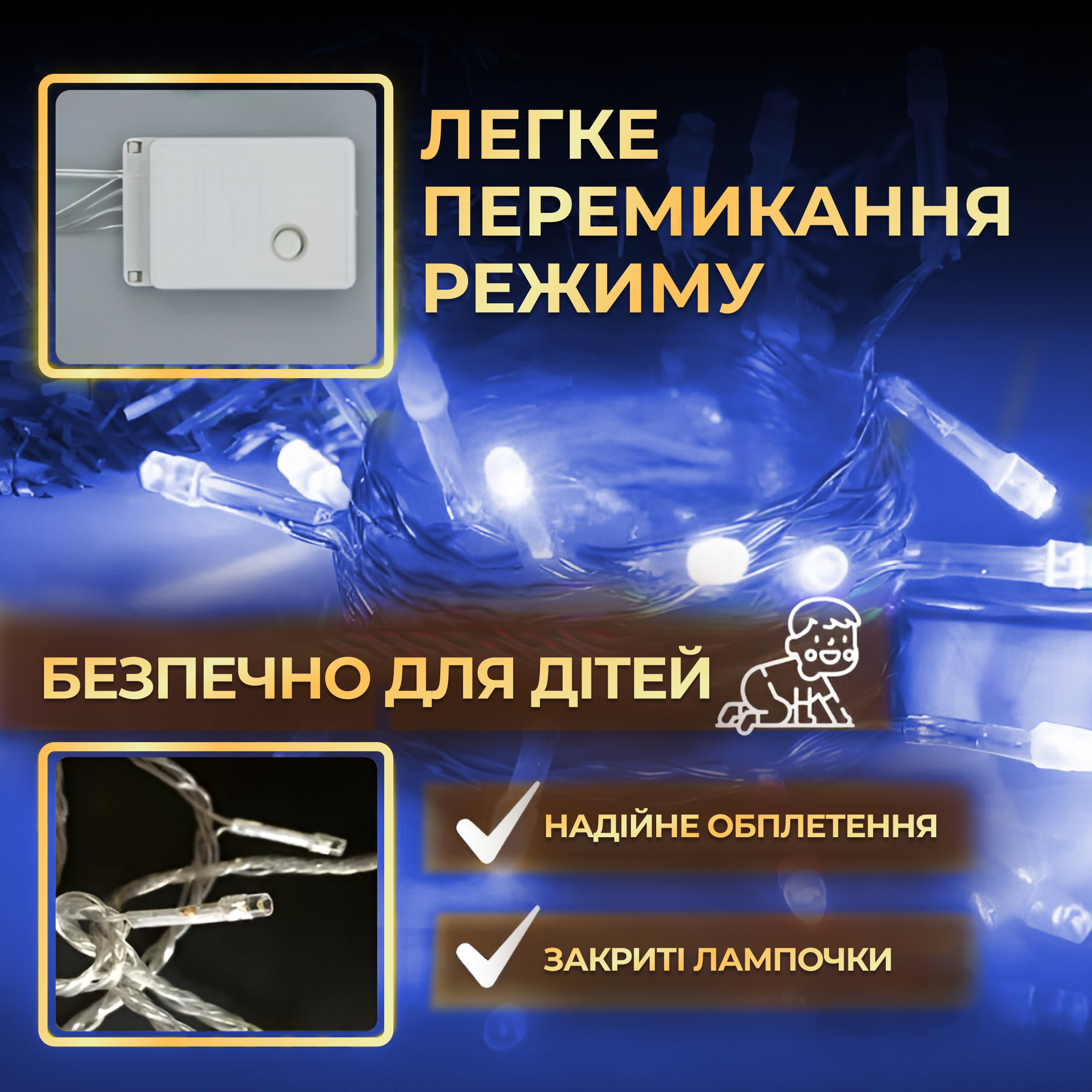 - Енергоефективність: Гірлянда споживає мінімум електроенергії, що дає змогу їй працювати тривалий час без перерви.