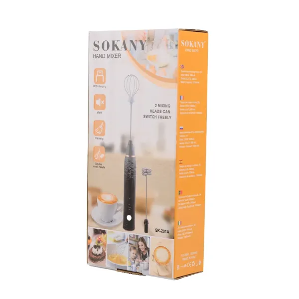 Капучинатор має три режими швидкості, що дозволяє регулювати щільність піни. Він обладнаний акумулятором місткістю 1200 мАг, що забезпечує до 30 хвилин автономної роботи. Sokany SK-201A легкий та портативний, його легко використовувати та чистити. Потрібно просто занурити вінчик в молоко, натиснути кнопку та за кілька секунд насолоджуватись пишною пінкою.