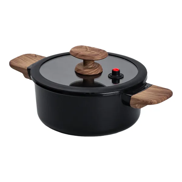 Кришка з жароміцного скла з паровідводом допомагає контролювати процес приготування, утримуючи тепло та зберігаючи всі аромати страв. Використання цієї каструлі допомагає зберегти максимальну кількість корисних речовин в їжі завдяки можливості готувати з мінімальною кількістю жиру.