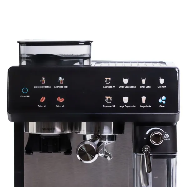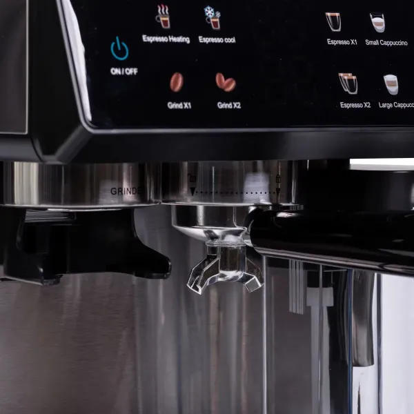 Пристрій працює як з меленою, так і з зерновою кавою та має 20 ступенів налаштування помелу. Сенсорна панель дає змогу легко обрати один із запрограмованих режимів приготування: еспресо, лате, флет-вайт, холодне заварювання або просто гаряча молочна піна. Резервуари для води (2,6 л), для молока (500 мл) забезпечують зручність при приготуванні кількох порцій поспіль.