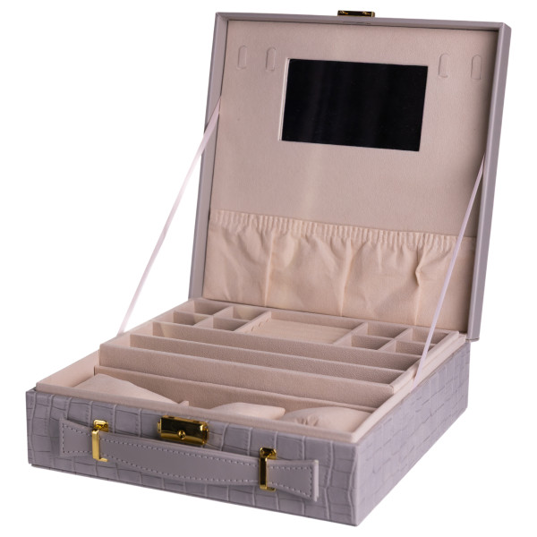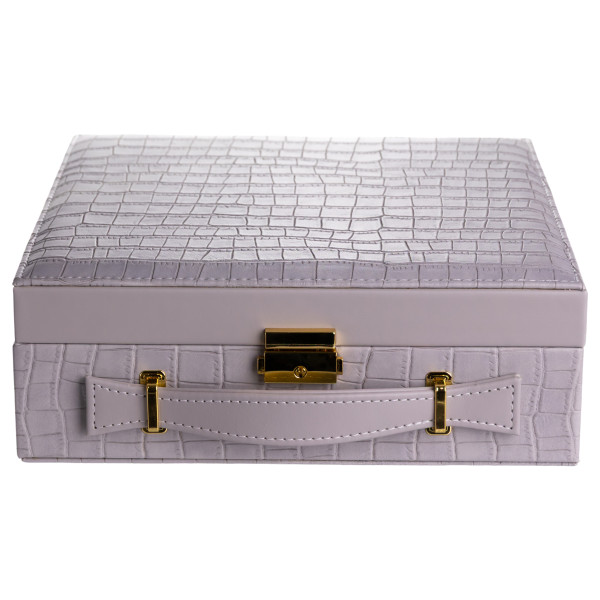 Кейс-органайзер для прикрас у вигляді валізки - відмінний вибір для зберігання та транспортування різноманітних аксесуарів. Органайзер має розміри 26х26х9 см та зручну ручку, що робить його не лише доповненням туалетного столика, а й ідеальним варіантом для стилістів, ювелірів, дизайнерів. Кейс можна використовувати для перевезення прикрас на виставки та презентації, демонстрації клієнтам.