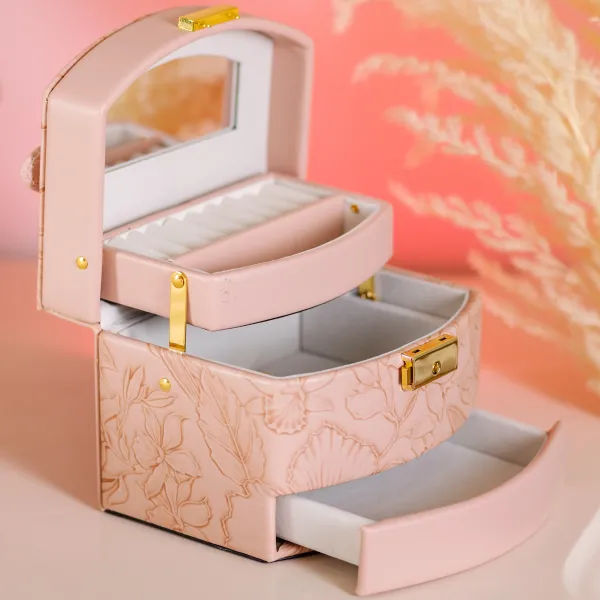 Органайзер доповнений дзеркалом у кришці, що робить його використання ще зручнішим. Скринька щільно закривається, є замочок, що забезпечує додаткову зручність при транспортуванні.