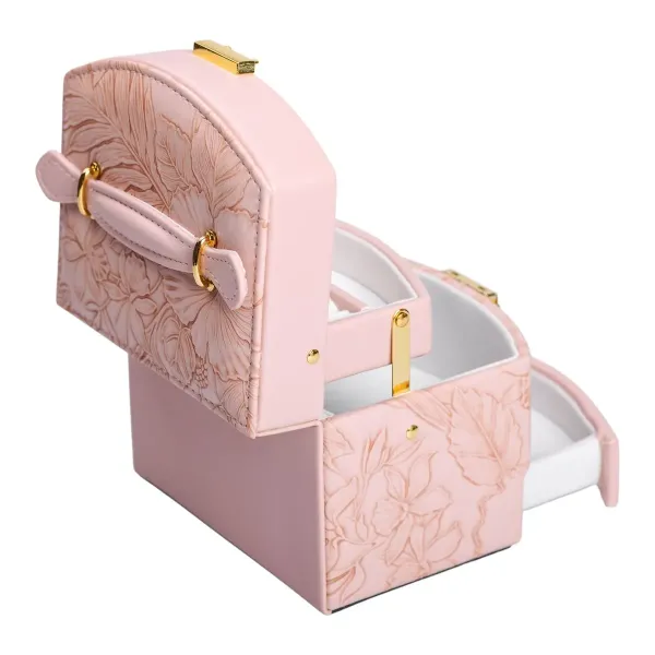 Кейс-скринька для прикрас розміром 15,5х11,5х11,5 см - ідеальне рішення для зберігання аксесуарів. Скринька має 4 відсіки, завдяки чому можна зручно розмістити каблучки, браслети, сережки, ланцюжки. Внутрішнє оздоблення виконане з велюру і відмінно підходить для перлів, каміння, дорогоцінних металів та біжутерії.