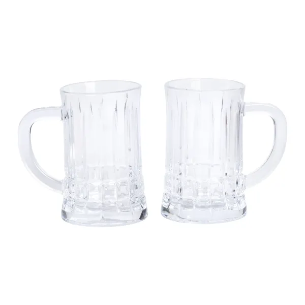Кожен кухоль має висоту 12 см, верхній діаметр — 7 см, нижній — 7.5 см. Завдяки широкій основі посуд добре стоїть на столі навіть у наповненому стані. Об’єм 310 мл дає змогу подавати стандартну порцію пива з достатнім місцем для піни. Ребриста структура поверхні надає виробу додаткового зчеплення в руці.