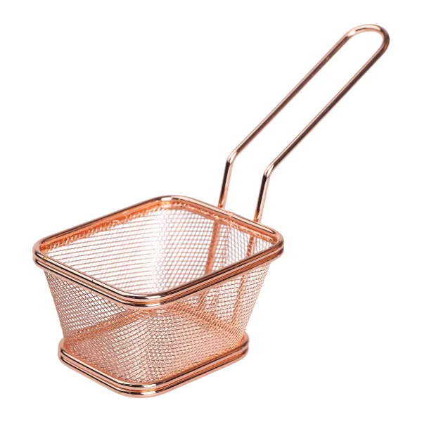 Сервірувальний кошик - практичний аксесуар для подачі гарнірів і закусок. Він ідеально підходить для картоплі фрі, курки, цибулевих кілець, креветок та інших страв, приготованих у фритюрі. Завдяки своїй конструкції кошик забезпечує зручну та ефектну подачу страв.