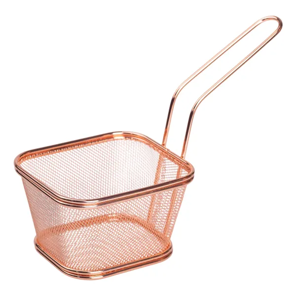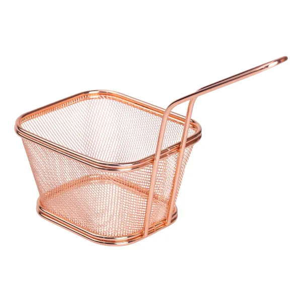 Сервірувальний кошик - практичний аксесуар для подачі гарнірів і закусок. Він ідеально підходить для картоплі фрі, курки, цибулевих кілець, креветок та інших страв, приготованих у фритюрі. Завдяки своїй конструкції кошик забезпечує зручну та ефектну подачу страв.