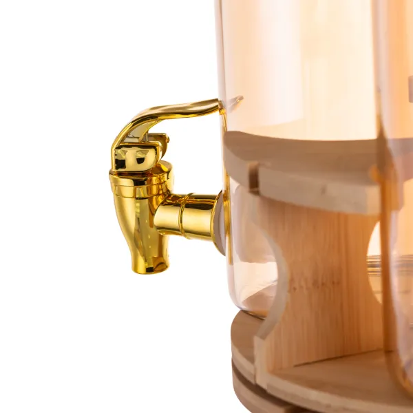 Ємності виготовлені із прозорого скла, що дає можливість бачити вміст, для стійкості передбачена бамбукова підставка. Кожен диспенсер оснащений пластиковим краном, кришки мають силіконовий ущільнювач, завдяки чому виключено потрапляння всередину пилу та комах.