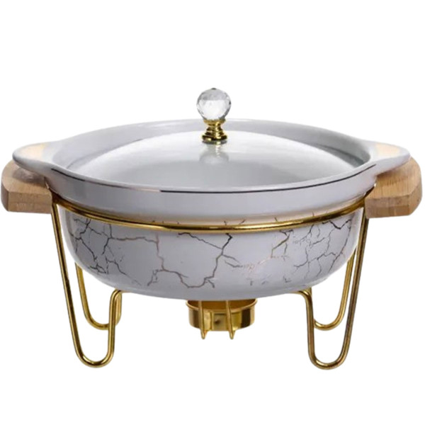 Елегантна мармітниця з порцеляни об'ємом 800 мл - ідеальне рішення для подачі супів, бульйонів та гарячих закусок. Фарфорова чаша з витонченим «мармуровим» малюнком і створює преміальний зовнішній вигляд, завдяки чому мармітниця чудово виглядає на столі на сімейній вечері, в ресторані або на фуршеті.