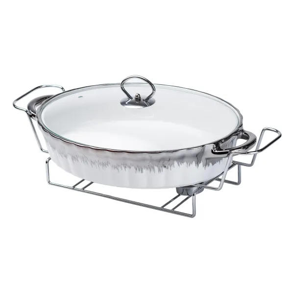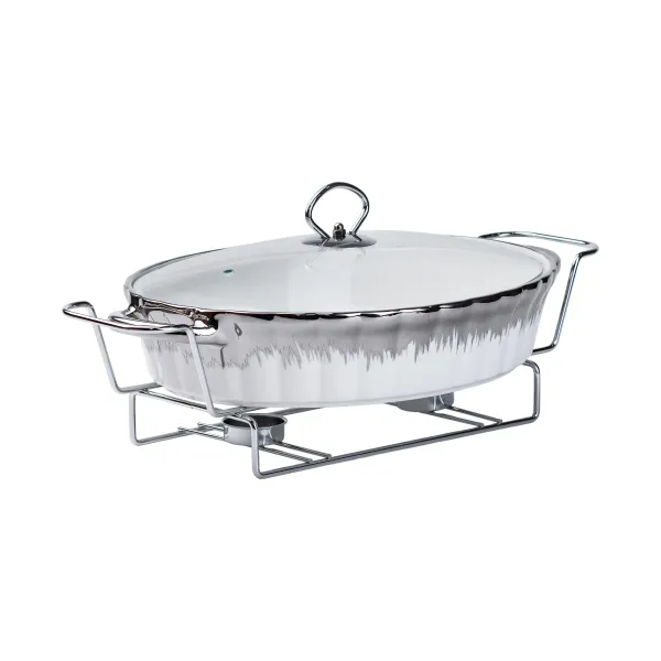 Хромована металева підставка з підігрівом додає практичності, підтримуючи страви теплими протягом всього часу подачі. Ця мармітниця не тільки забезпечує зручність у використанні, але й стане привабливим елементом сервірування столу.