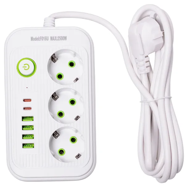 Мережевий фільтр-подовжувач LUXE - чудовий вибір для організації доступу до електроживлення вдома та в офісі. Фільтр має високу потужність, 3 розетки, 4 порти USB-A і 2 роз'єми USB-C, що дозволяє не тільки підключати кілька пристроїв до мережі, але й заряджати різноманітні гаджети без необхідності використовувати додатковий блок живлення.