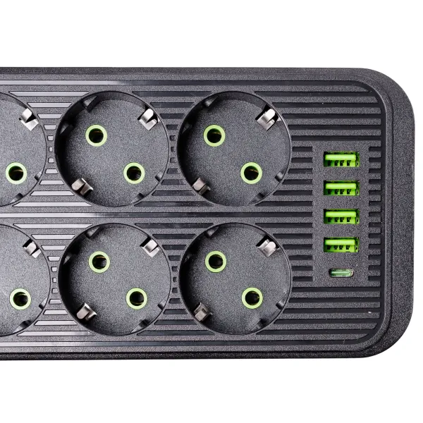 Мережевий фільтр-подовжувач SMART - чудовий вибір для організації доступу до електроживлення кількох пристроїв одночасно. Фільтр має високу потужність, має 6 розеток, 4 порти USB-A і 1 роз'єм USB-C, що дозволяє не тільки підключати кілька пристроїв до мережі, але й заряджати різноманітні гаджети без необхідності використовувати додатковий блок живлення.