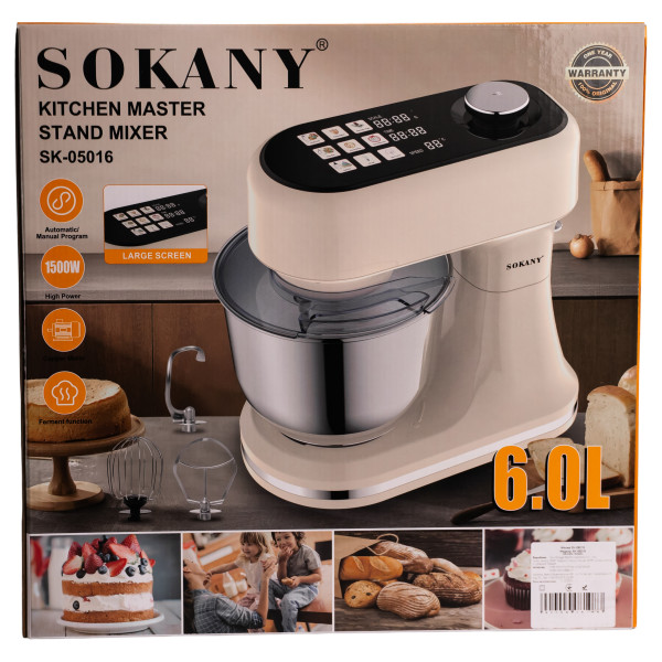 Планетарний міксер Sokany SK-05016 призначений для змішування, збивання та замішування інгредієнтів різної щільності. Потужність 1500 Вт забезпечує стабільну роботу, а чаша з нержавіючої сталі об’ємом 6 л підходить для щоденного використання. Пластиковий корпус зменшує вагу пристрою та спрощує догляд.