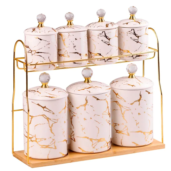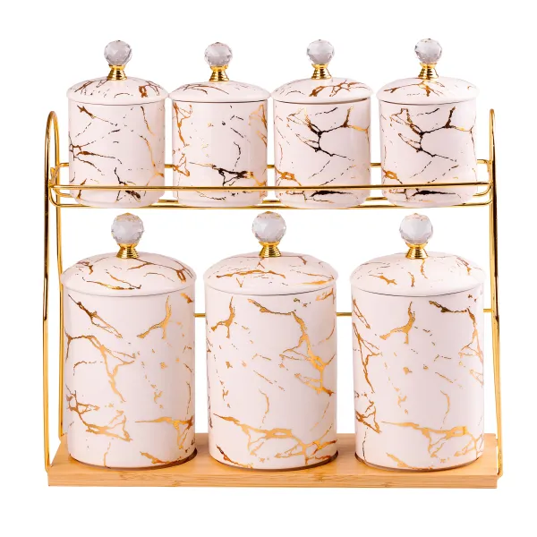 Банки виготовлені з якісної порцеляни, яка не вбирає запахи та легко миється. Кожна ємність має кришку із силіконовим ущільнювачем, яка надійно закриває горло, перешкоджаючи попаданню всередину вологи та сторонніх запахів. Такі банки відмінно підійдуть для зберігання чаю, солі та цукру, спецій та інших сипких інгредієнтів.