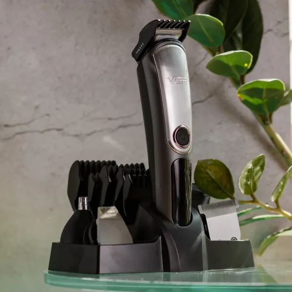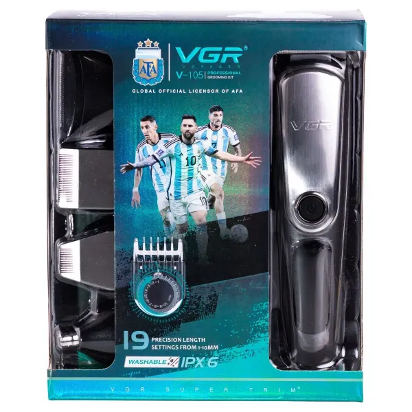 Машинка для стрижки VGR V-105 — це зручний інструмент для домашнього догляду за волоссям, який поєднує простоту використання та ефективність. У комплект входять п’ять насадок-гребенів, що дозволяють обирати потрібну довжину стрижки. Також передбачено підставку, масло для змащення лез і щітку для очищення, що полегшують догляд за пристроєм і підтримують його в належному стані.