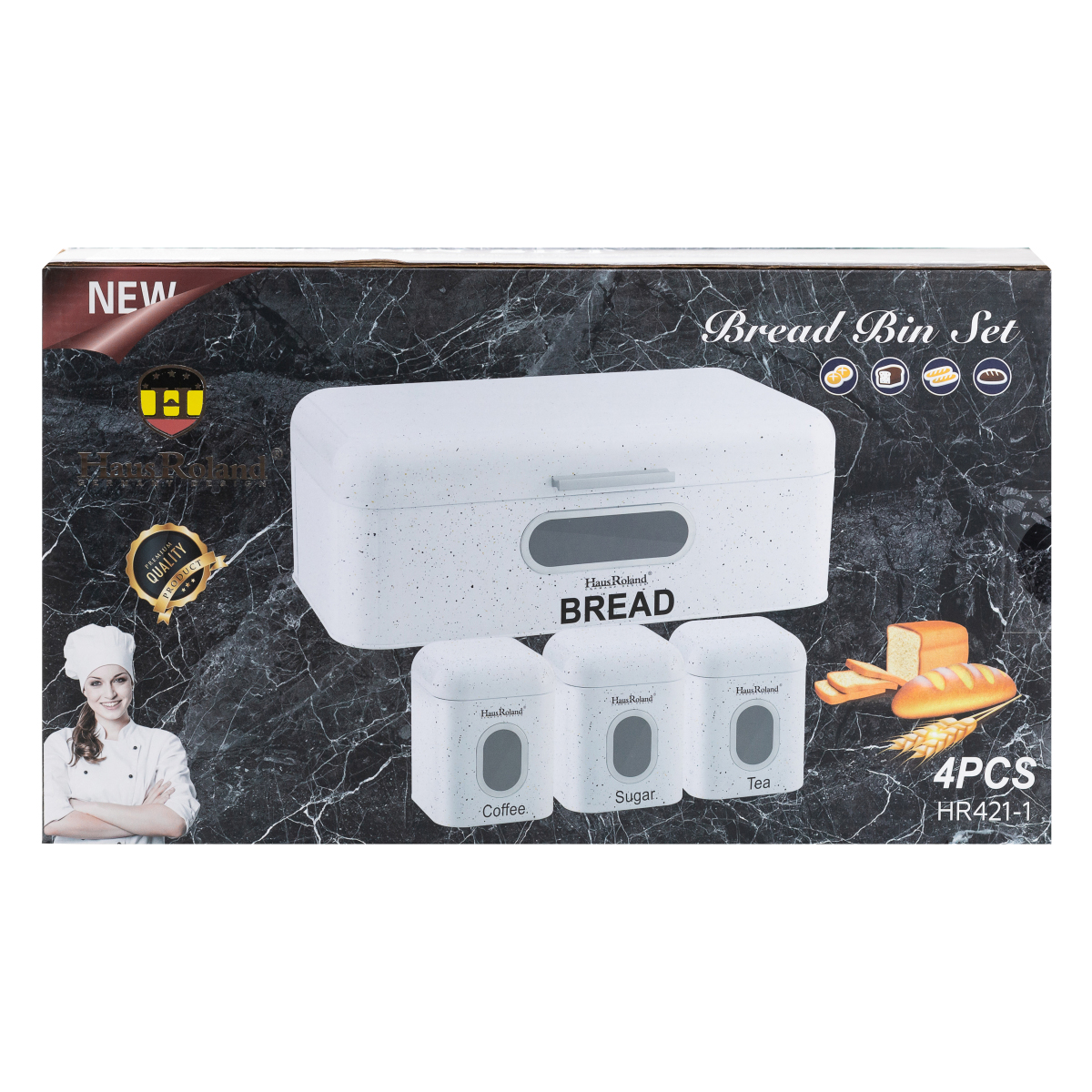 Набір для зберігання продуктів Haus Roland – стильне та функціональне рішення для організації кухонного простору. У набір входить містка хлібниця та 3 банки для сипучих продуктів із прозорою вставкою, що дозволяє контролювати кількість вмісту.