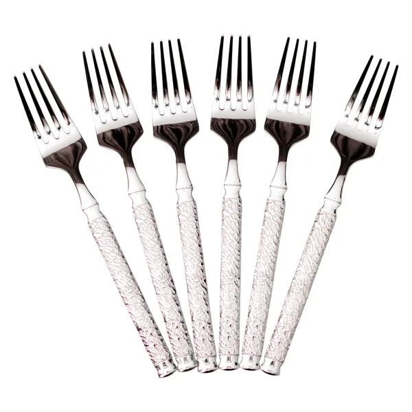 Набір десертних виделок – невід'ємний елемент завершальної частини святкового застілля, коли на стіл подають торт або тістечка. Елегантний стильний дизайн з молотковою текстурою дозволяє комбінувати їх з різним столовим посудом.
