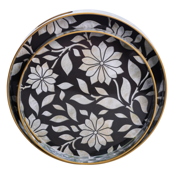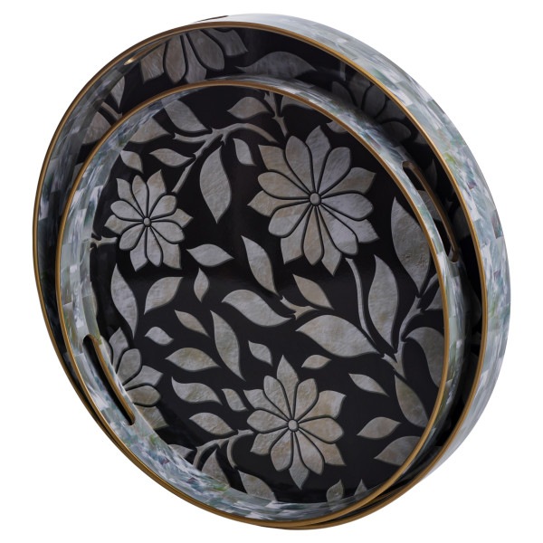 Набір декоративних підносів з легкого та міцного пластику - чудовий вибір для щоденного використання. У комплект входять два підноси, які відмінно підійдуть як для сервірування напоїв та закусок, так і для декоративної композиції на столі чи комоді. Ергономічні вирізні ручки забезпечують комфортне перенесення, а практичний матеріал легко миється і не боїться падінь.