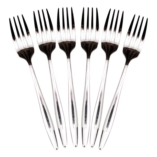 Набір десертних виделок ідеально підходить для завершальної частини святкового застілля. Витончений лаконічний дизайн дозволяє комбінувати їх з різним столовим посудом, гладка глянсова поверхня не накопичує забруднення та легко очищається після використання.