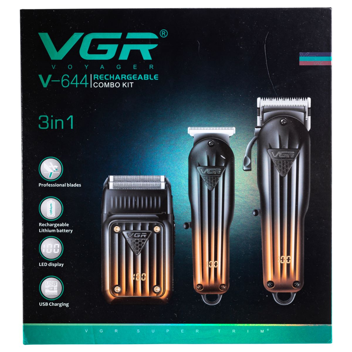 Набір для стрижки волосся і бороди 3 в 1 VGR V-644 поєднує функціональність трьох окремих приладів: машинки для стрижки, тримера та електробритви шейвера. Завдяки акумуляторному живленню з можливістю підключення до мережі (машинка й тример) цей набір зручний у щоденному використанні та підходить як для домашнього, так і для професійного догляду. Кожен пристрій має власний мотор, адаптований до свого функціонального призначення.