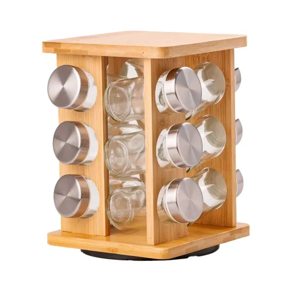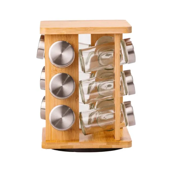 Набір ємностей для спецій складається з 12 баночок по 100 мл на дерев'яній підставці та стане чудовим способом організувати та зберігати спеції. Баночки виготовлені з міцного скла і мають кришки, що щільно закриваються, щоб зберегти свіжість спецій. Дерев'яна підставка дозволяє зручно розмістити баночки та захищає їх від пошкодження.