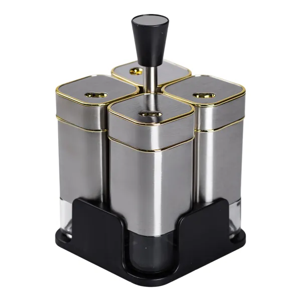 Набір ємностей для спецій на підставці 4 шт по 120 мл, хром
