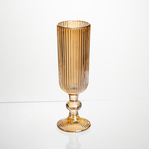 Чаша високої та вузької циліндричної форми має ребристий вертикальний візерунок по всій поверхні, що створює гру світла та підкреслює бульбашки ігристого вина. Така текстура додає виробу візуальної легкості та елегантності.