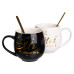 Набір фарфорових чашок Mr & Mis - відмінний подарунок та варіант для повсякденного використання. Класичний контраст чорної та білої кружки забезпечує елегантний і стильний вигляд. Чашки виготовлені з якісного фарфору, приємного на дотик та безпечного для щоденного використання. У набір входять 2 металеві ложечки - ідеально для чаю, кави та гарячого шоколаду.