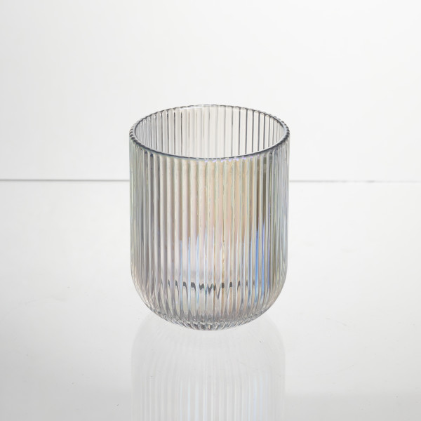 Поверхня склянок прикрашена ребристим візерунком із чітких вертикальних смуг, що створює гру світла, підкреслює прозорість скла та додає об’єму без зайвого декору. Текстурована поверхня також покращує захват і додає виробам виразності.