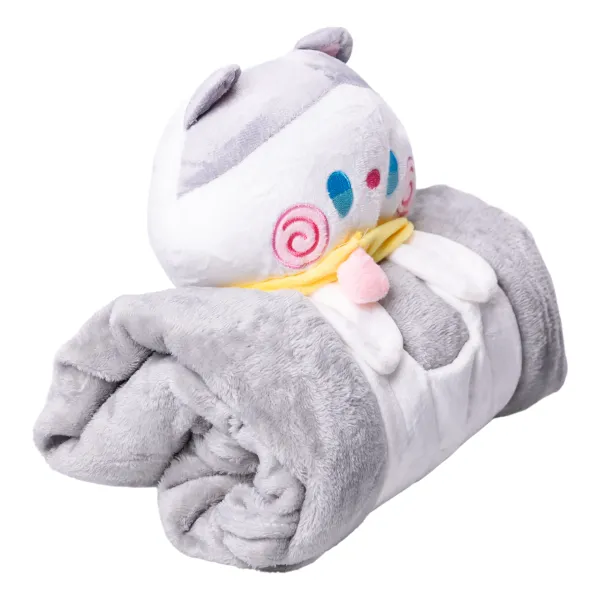 Дитяча іграшка з пледом – чудовий вибір для створення затишку в будинку. Плед згортається в рулон і фіксується тканинними лямками на кнопках, що перетворює його на компактний валик-іграшку. Це робить аксесуар ідеальним доповненням дитячого ліжечка, поїздок та подорожей, затишних вечорів удома. Він замінить одразу два предмети — м'яку іграшку та плед, який завжди під рукою. Компактний формат дозволяє брати його із собою в дорогу, а кумедний дизайн обов'язково сподобається дітям.