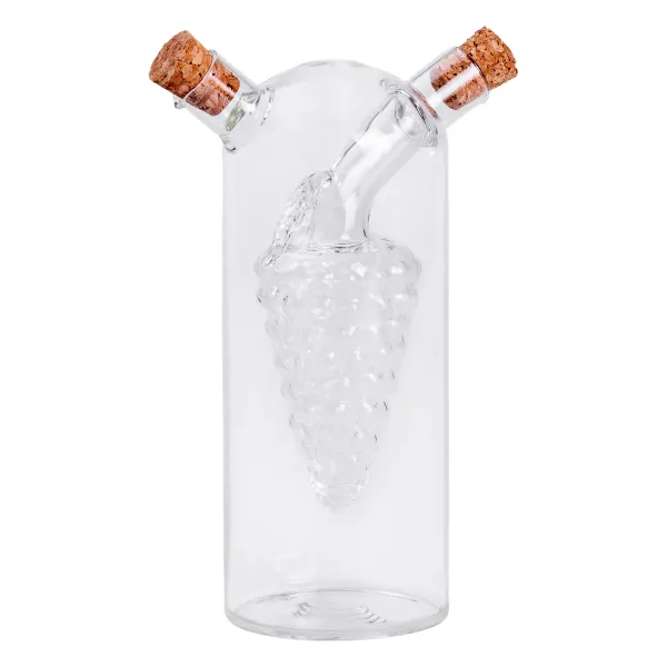 Оригінальна скляна пляшка для олії та оцту - зручний та практичний аксесуар для повсякденного використання. Пляшка виготовлена з якісного боросилікатного скла, не вступає в реакцію із вмістом. Ємність ідеально підходить для зберігання олії, оцту та соєвого соусу, дозволяє зручно дозувати приправи під час приготування їжі або заправки салатів. Відділення надійно закриваються пробками, запобігаючи потраплянню всередину пилу та сторонніх запахів, витіканню продукту.
