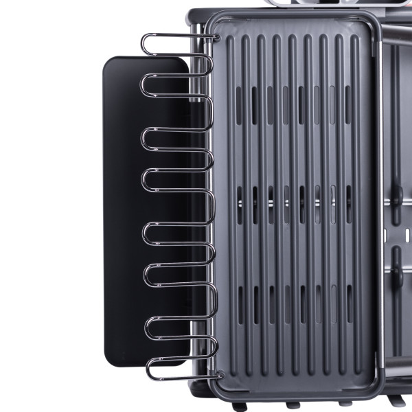 - Матеріали: каркас та напрямні з алюмінію забезпечують легкість та корозійну стійкість, підставки для посуду – якісний пластик (вологостійкий, легкий у догляді).