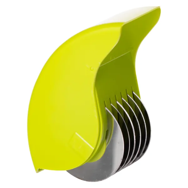 Роликовий ніж для зелені – універсальний аксесуар, який допоможе швидко подрібнити зелень, цибулю, часник, селера, інші овочі, а також нарізати тісто для домашньої локшини. Цей міні-слайсер значно прискорює приготування страв, маринадів та заправок до салатів. Продукти не деформуються при нарізанні та зберігають усі смакові якості.