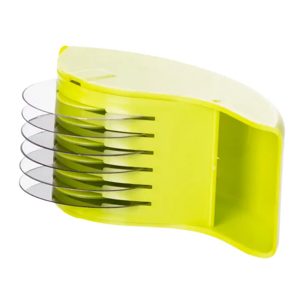 Ніж має ергономічну ручку, просту та надійну конструкцію. Ножі надійно фіксуються для безпечного використання, аксесуар легко розбирається для чищення після роботи.