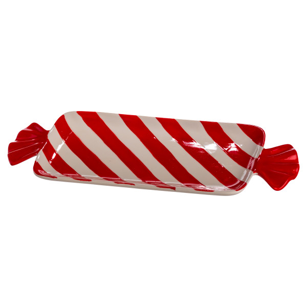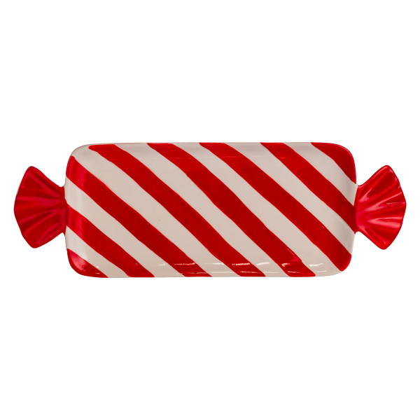 Фарфоровое блюдо для десертов в форме конфеты — это гармоничное сочетание праздничного дизайна и практичности. Его прямоугольная форма с плавными линиями и красными краями в виде завязок создает ощущение тепла и радости, что идеально подходит для новогоднего стола. Лаконичный декор из красных и белых линий придает изделию изящество и делает его универсальным дополнением к любому интерьеру.