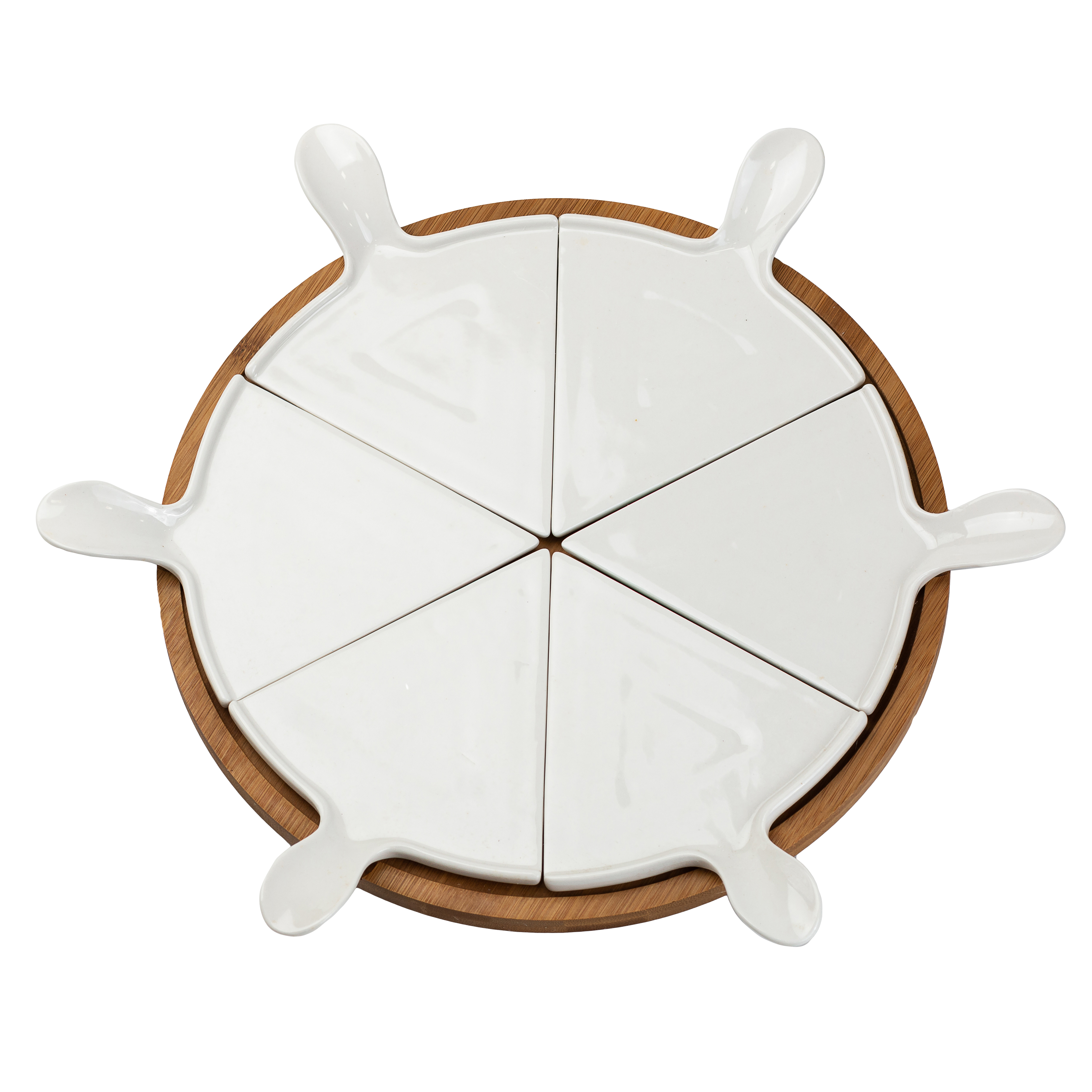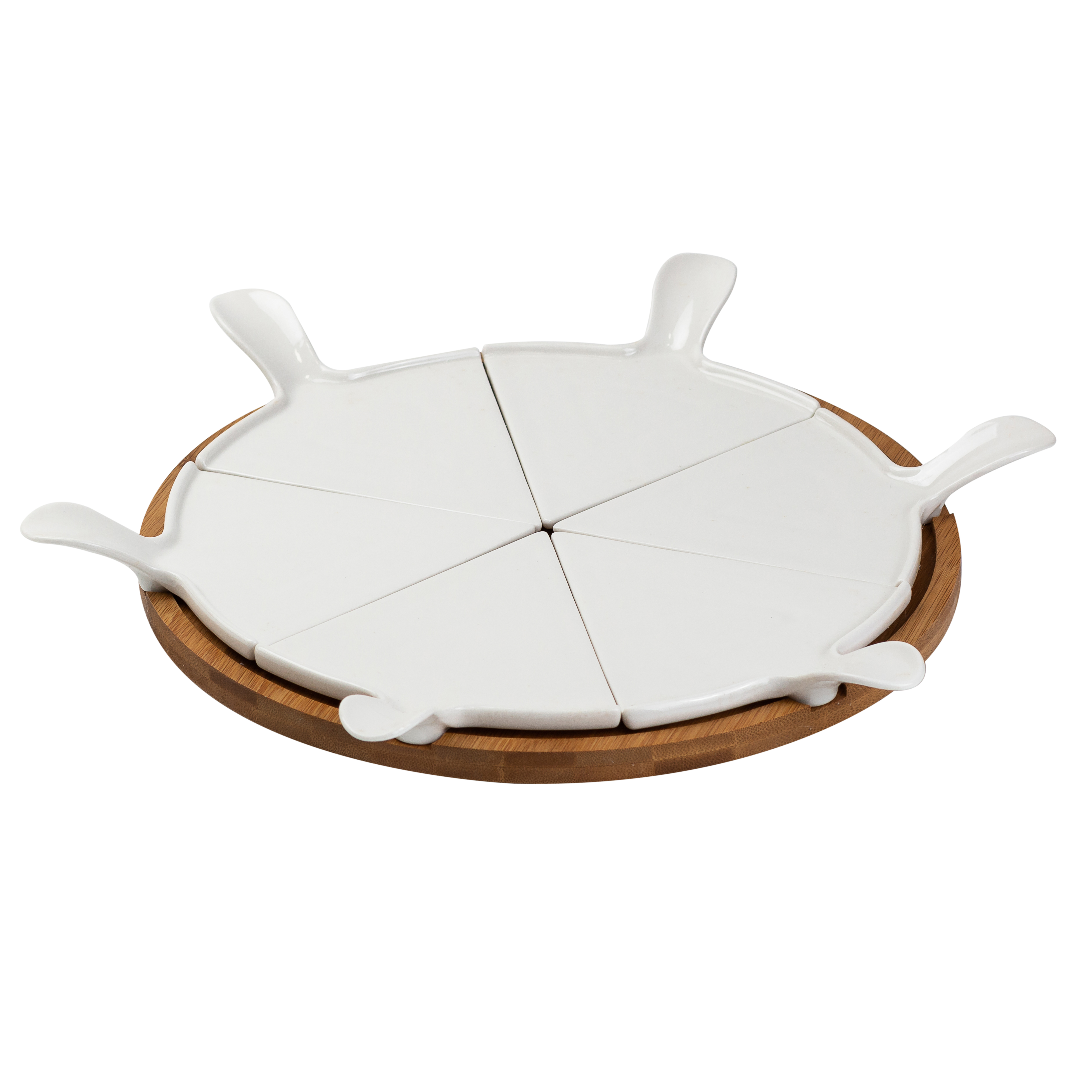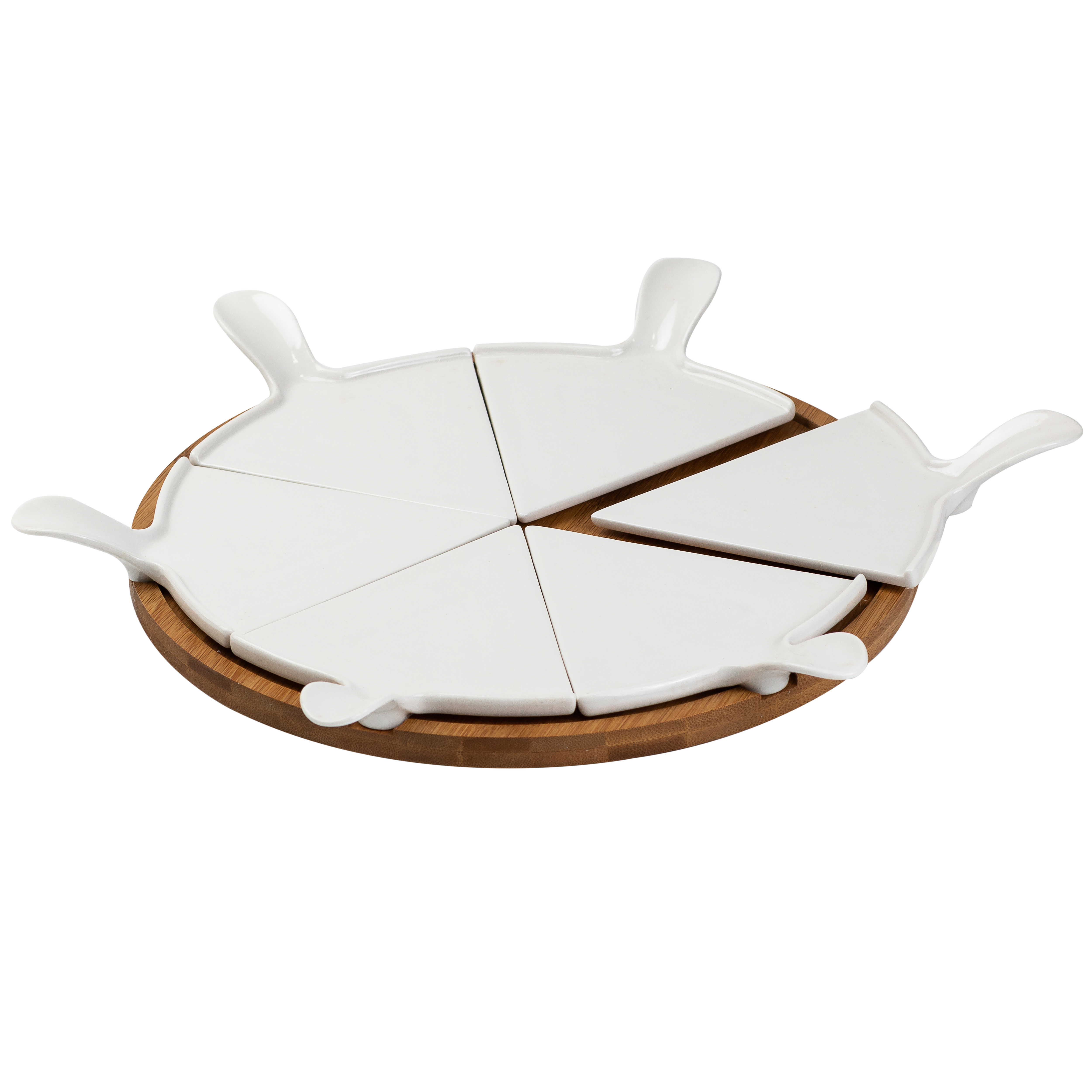 Блюдо для пиццы диаметром 28 см – отличный вариант для сервировки стола. Выполненное в строгом лаконичном дизайне, оно "впишется" в любую стилистику застолья, что позволяет использовать его для обедов в семейном кругу и торжественных мероприятий. Блюдо имеет вращающуюся бамбуковую подставку, фарфоровая тарелка дает возможность без проблем разделить пиццу на 6 равных частей для порционной подачи. Такая посуда идеально подойдет также для разных видов выпечки, среди которых торты, открытые и закрытые пироги, кексы, запеканки и многое другое.