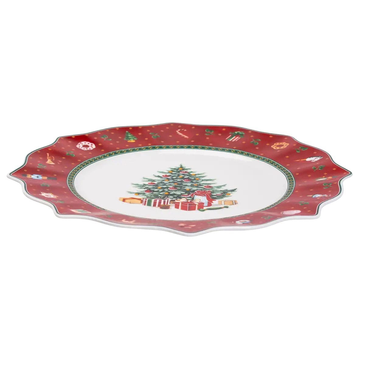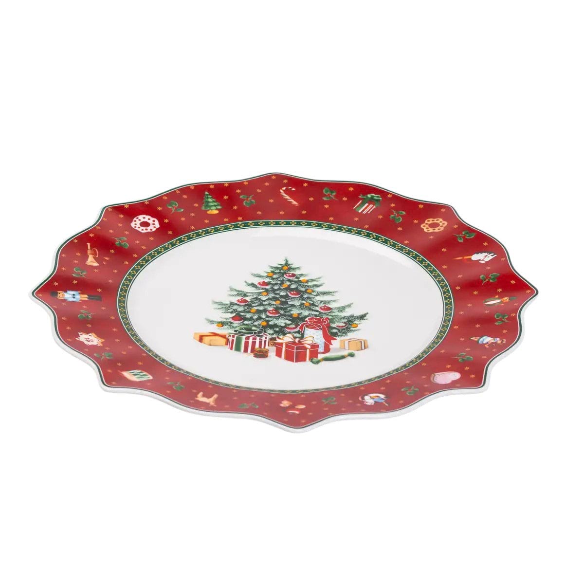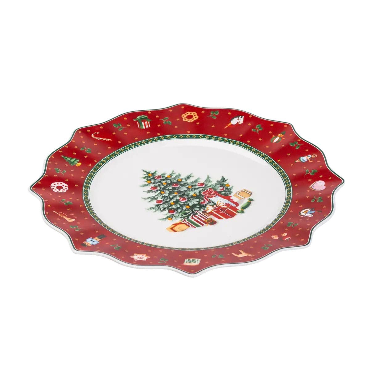 Фарфоровое блюдо с новогодним декором - идеальное решение для сервировки праздничного стола и создания в доме уютной рождественской атмосферы. Блюдо имеет достаточно большие размеры и подходит для эффектной подачи закусок, десертов, рыбы, мяса и различных лакомств, а также в качестве оригинального подарка для родных и близких.