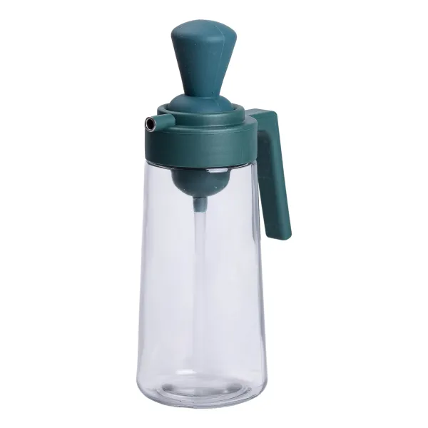 Бутылка для масла стеклянная 2 в 1 с пробкой и силиконовой кисточкой 550 мл, зеленый