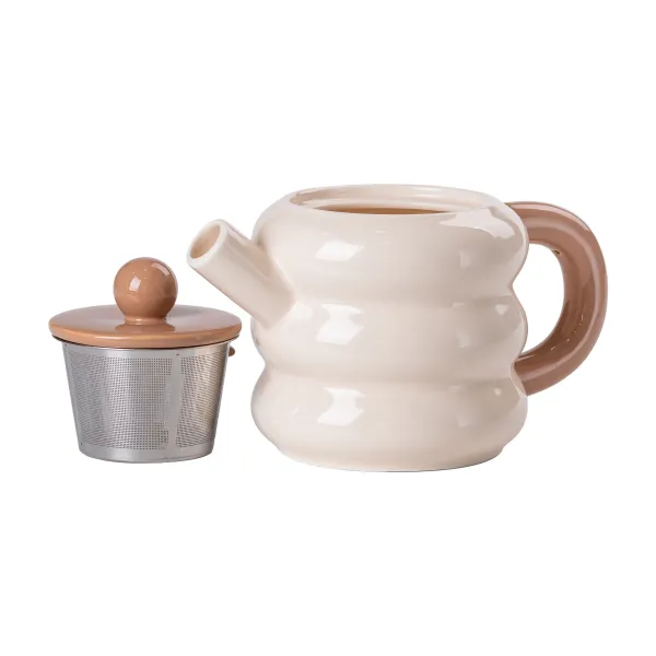 Чайный сервиз Donut - это стильный фарфоровый набор на 6 персон, выполненный в нежном бежевом цвете. В сервиз входят чайник объемом 1,3 л, шесть чашек по 250 мл, и блюдца для каждой чашки. Основной особенностью является бамбуковая двухуровневая подставка, которая добавляет не только эстетичности, но и функциональности, позволяя удобно хранить и подавать сервиз.