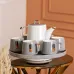 Вращающаяся подставка не только обеспечивает удобный доступ к чашкам и чайнику, но и привносит в сервиз элемент эстетики. Ее можно использовать как для сервировки или организации хранения набора, так и для подачи разнообразных лакомств к чаю.