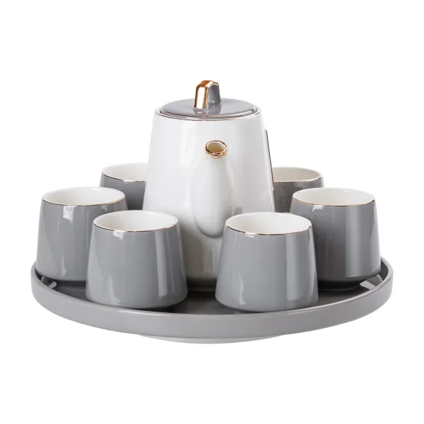 Чайник, выполненный из высококачественного фарфора, позволяет дольше сохранять тепло чая. Каждая чашка в наборе изготовлена с учетом современных стандартов, что гарантирует долговечность. Они идеально подходят для подачи как горячих, так и холодных напитков, что делает сервиз универсальным для любого мероприятия.